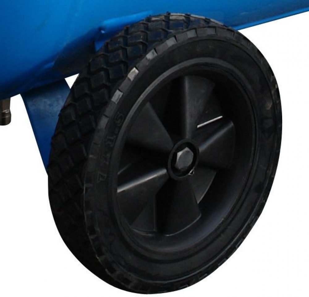 Dvoupístový kompresor s robustním podvozkem pro bezpečné stání. Válcový agregát tvaru V s olejovým mazáním. Nízké těžiště pro bezpečnou přepravu. Plastová ochrana na motoru pro optimální provozní bezpečnost a optimální přívod chladícího vzduchu.