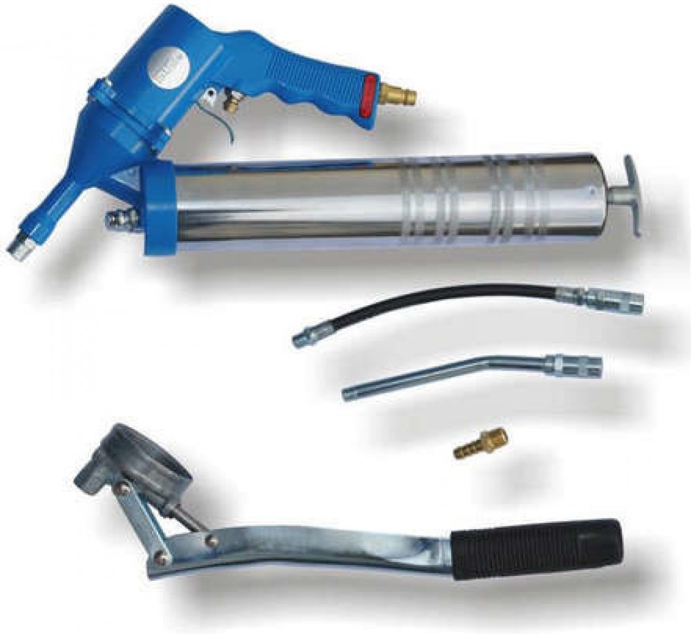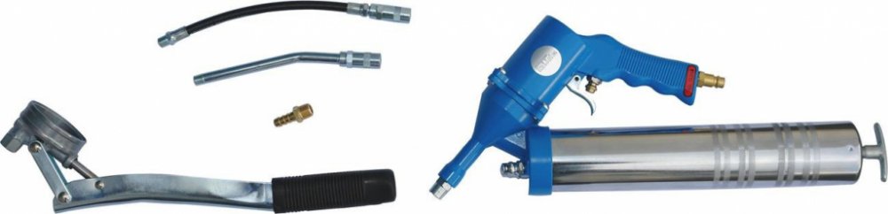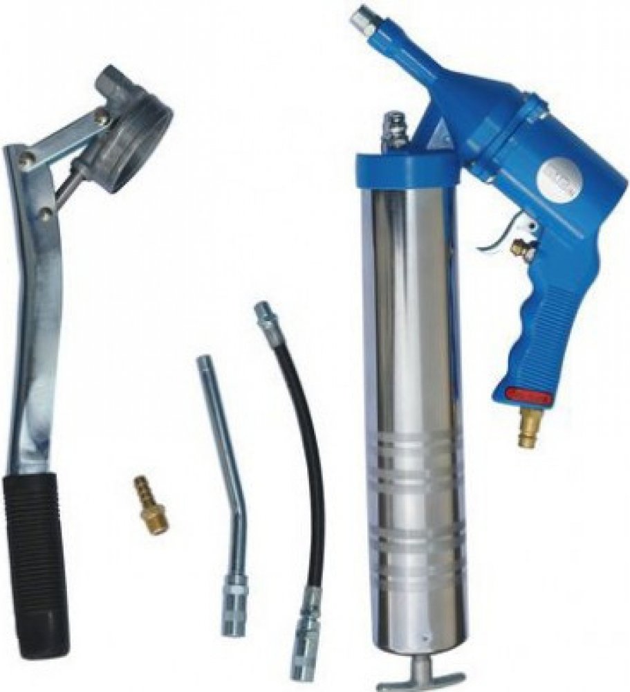 Pneu maznice, určená k aplikaci maziv z kartuší (→ 400 g patrony) i velkoobjemových zásobníků.