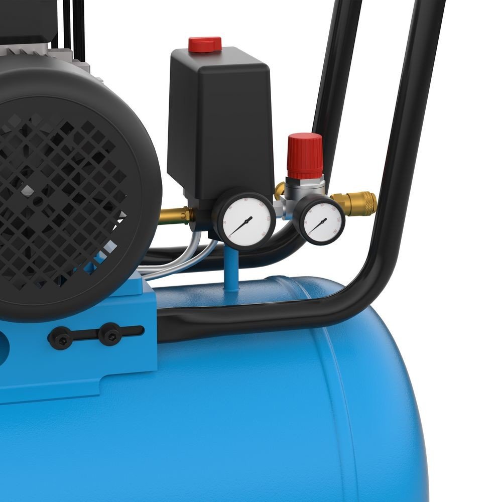 Výkonný kompresor, určený ke stlačování vzduchu za účelem jeho využití v domácích i servisních nebo řemeslnických dílnách.