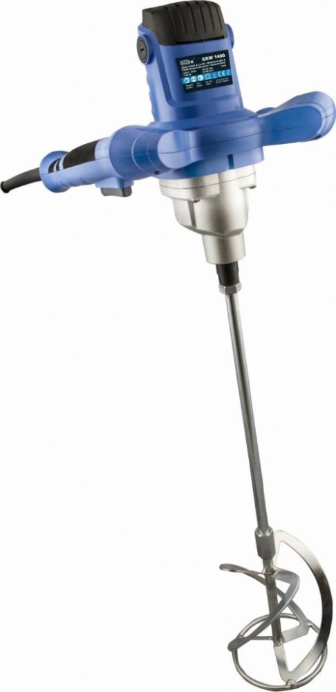 Míchadlo GÜDE GTW 1400 s regulací otáček a průměrem míchadla 140 mm disponuje příkonem 1400 W. Součástí 1 míchadlo s pravotočivým košem pro směšování stavebních hmot.