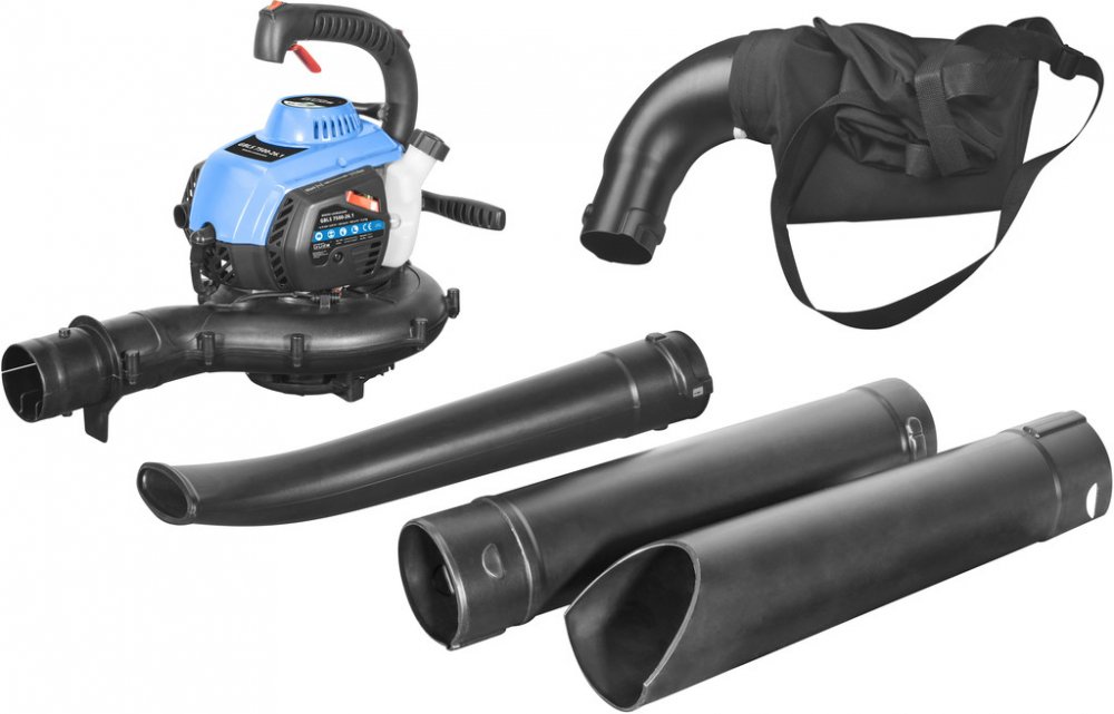 Benzinový vysavač, určený k odstranění rostlinného odpadu ze zahradních trávníků i zpevněných ploch okolo domu.
