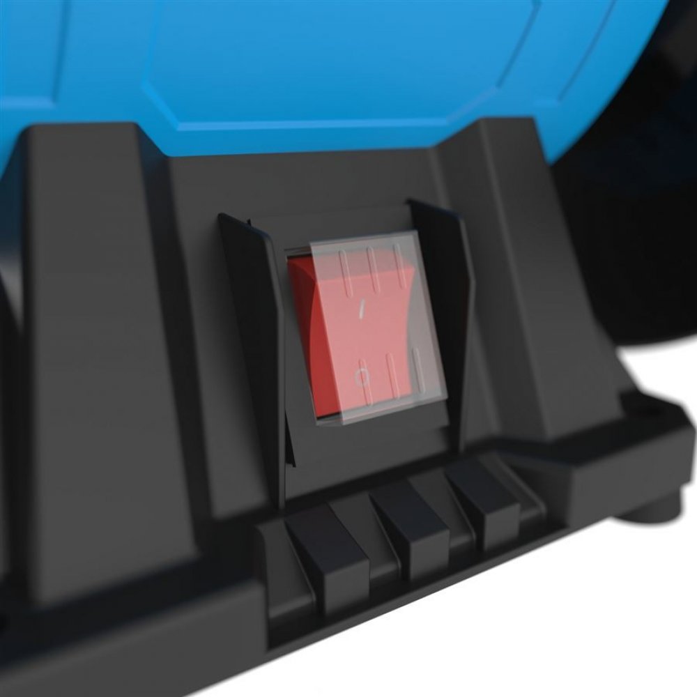 Konstrukce: vylehčená kovová skříň, nastavitelné opěrky obrobku, ochranné kryty proti jiskrám, robustní podstavec (vč. otvorů pro montáž na pracovní desku).