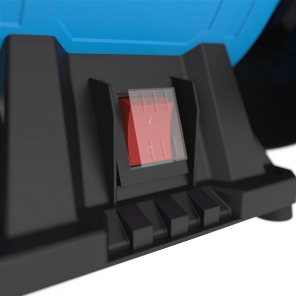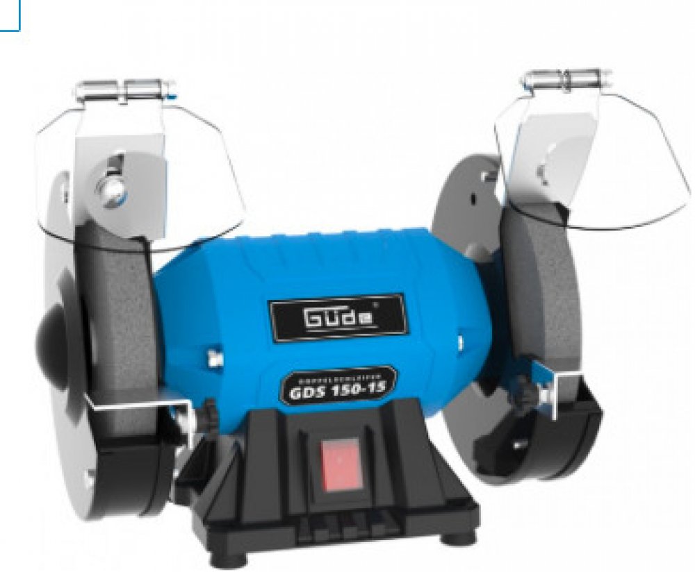 Konstrukce: vylehčená kovová skříň, nastavitelné opěrky obrobku, ochranné kryty proti jiskrám, robustní podstavec (vč. otvorů pro montáž na pracovní desku).