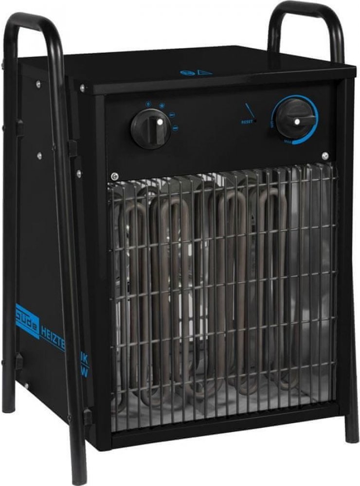 Elektrické topidlo s ventilátorem a dvěma výhřevními stupni (4,5 a 9 kW) a prostorovým termostatem.