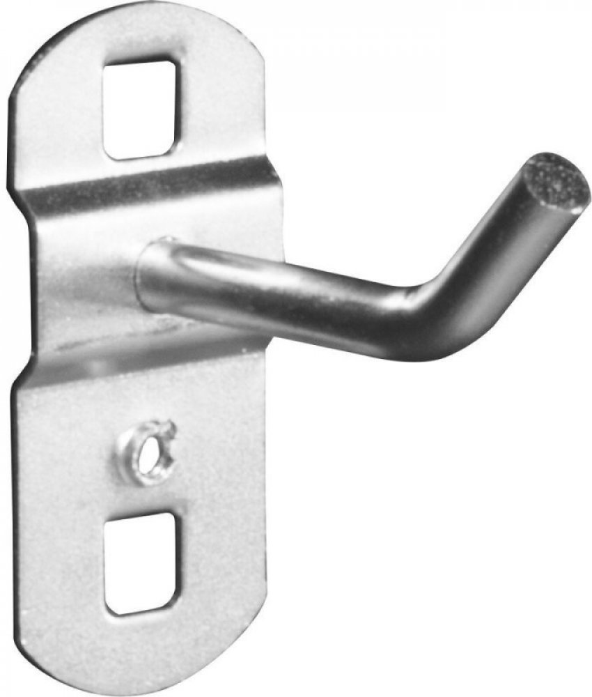 Držák dílenského nářadí a nástrojů pro uchycení do perforované stěny a systémů se čtvercovými otvory 8x8 - 10x10 mm, středovou vzdáleností otvorů 38 mm vertikálně a horizontálně. Šikmé zakončení háčku, hloubka 50 mm. V balení 1 ks.