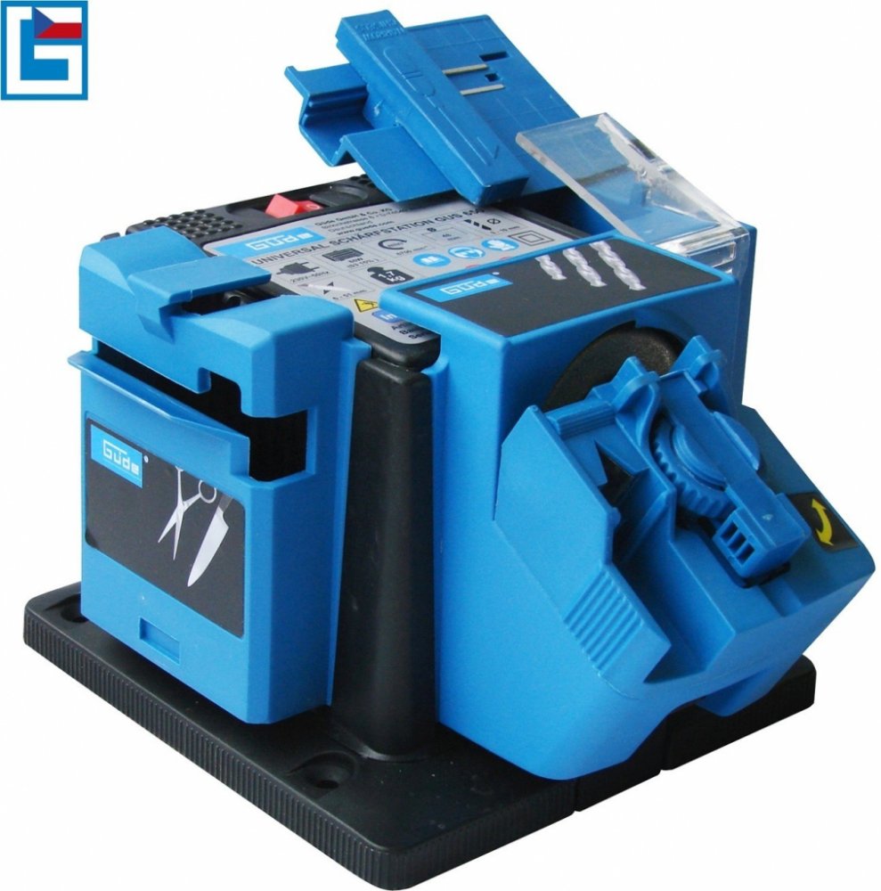 Víceúčelová ostřička s integrovaným zařízením pro broušení spirálových vrtáků 3-10 mm, určená k ostření/broušení kuchyňských nožů a nůžek, zahradnických nůžek, rýčů, kos, nožů k sekačkám na trávu, špachtlí, šroubováků, dlát, hoblovacích nožů, seker apod.
