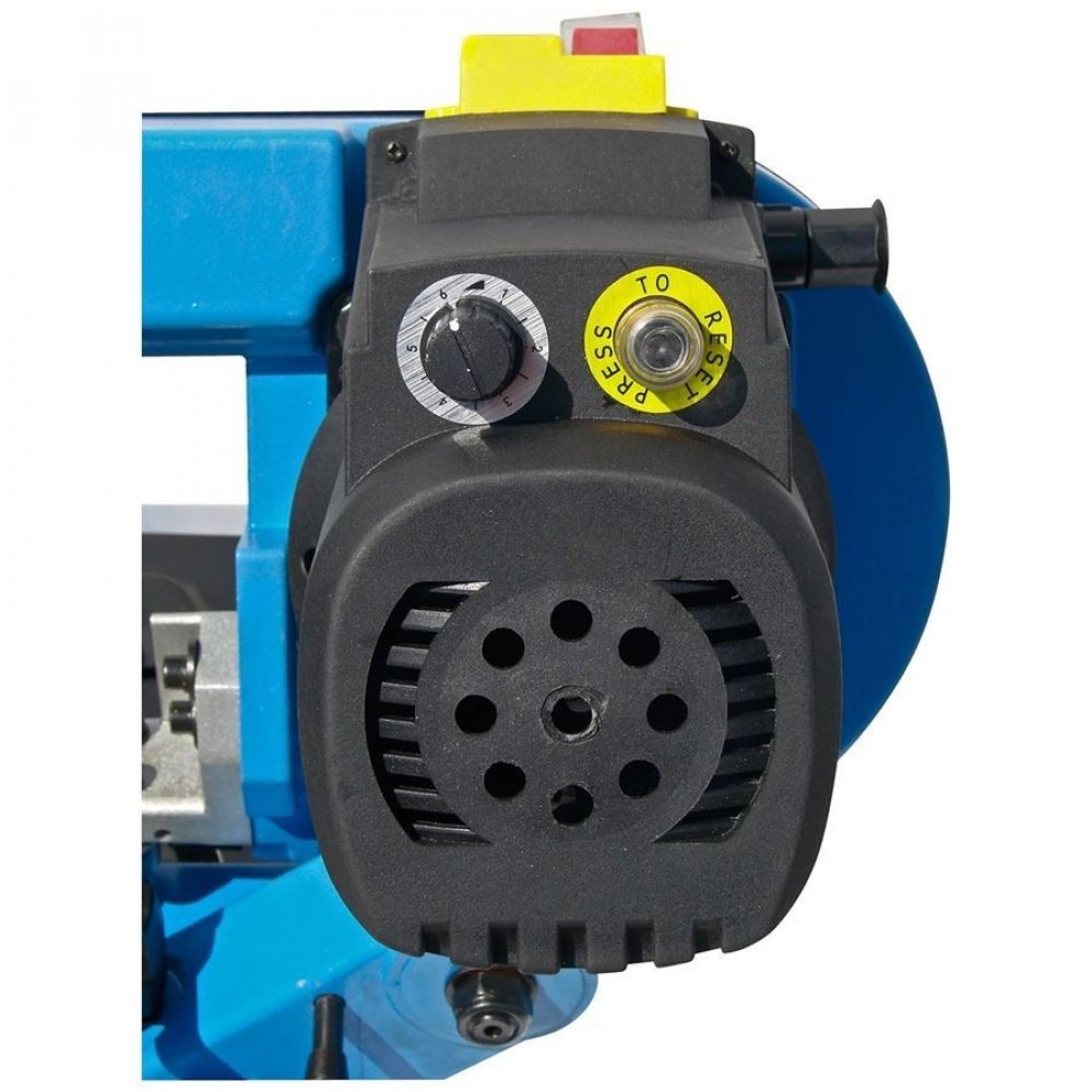 * Pásová pila na kov s variabilně nastavitelnou rychlostí pilového pásu. Vhodná na řezání oceli, litiny, hliníku, mědi, ušlechtilé oceli, PVC, teflonu. Výkyvná hlava pily umožňuje řezání do úhlu 0 ° - 60 °.