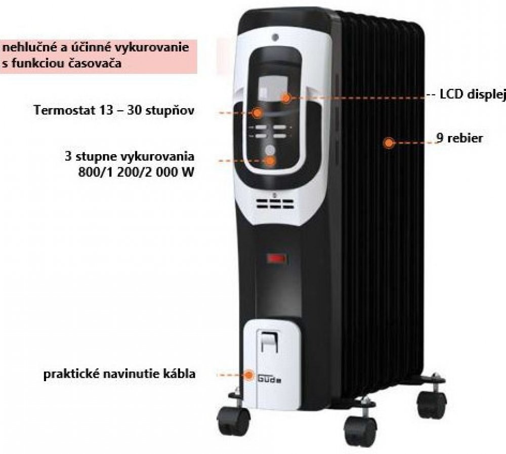 • Olejový radiátor GÜDE, pohodlné a mobilní vytápění pro různá místa např. obývací pokoj, dílna nebo garáž.