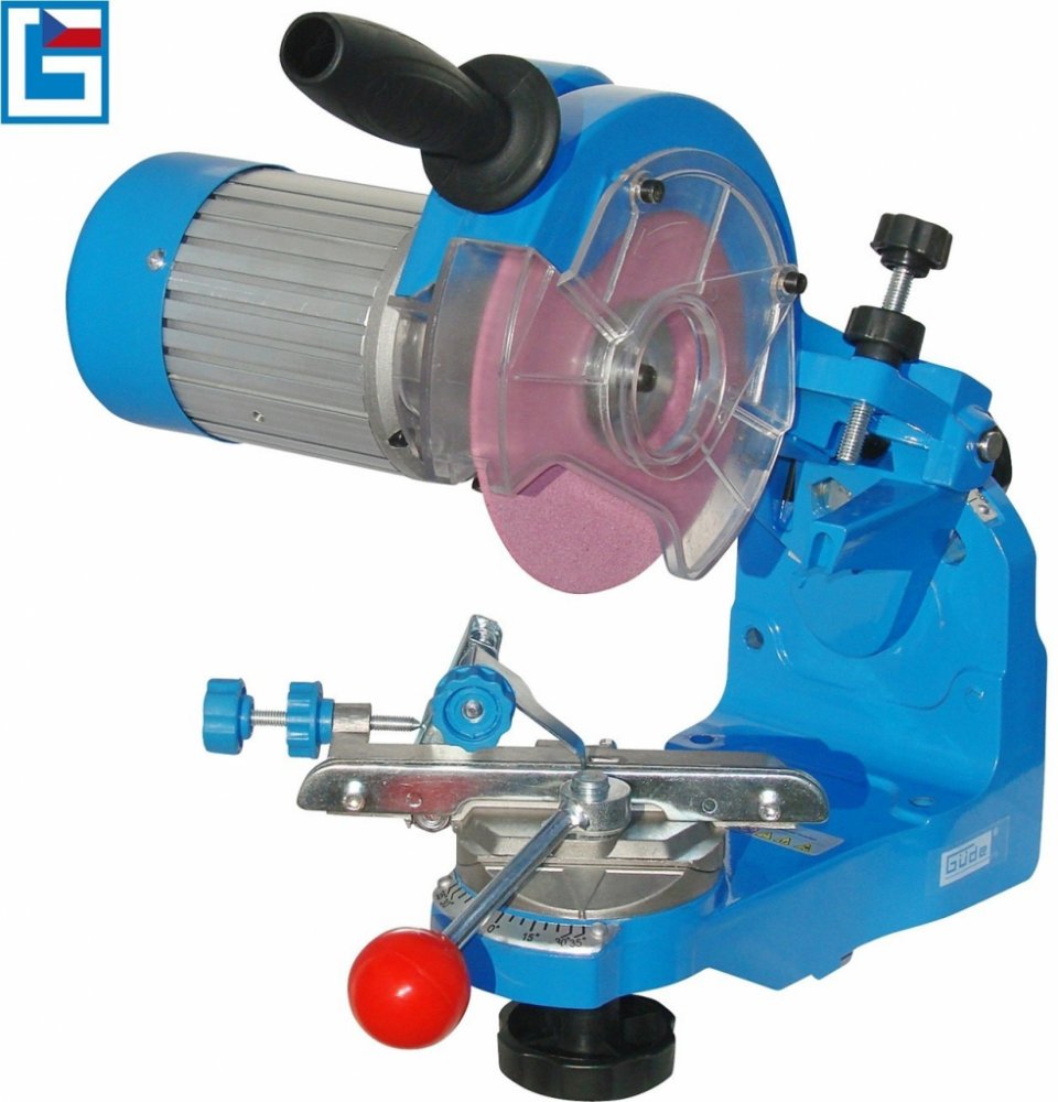 Robustní ostřička pilových řetězů, určená k broušení všech běžně používaných typů řetězů elektrických/motorových pil v podmínkách servisů, specializovaných prodejen zahradní techniky apod. Jemné seřízení/spolehlivé upevnění broušeného řetězu, oboustranné ostření všech článků řetězu díky naklápěcí brusné hlavě (90 - 50°) a otočnému upínacímu mechanizmu, vodicí rukojeť pro přesné navádění brusného kotouče k ostřeným zubům. Motor 230 W/P1, bezpečnostní spínač, 1,5 m přípojný elektrický kabel H05 VV-F. Konstrukce: korpus ostřičky z hliníku, otočný pracovní stůl s úhlovou stupnicí (-> rozsah: ± 35°), hloubkový doraz brusného kotouče (-> nastavitelný), vestavěná lampička k osvětlení ostřené plochy, průhledný kryt kotouče jako garance bezpečné práce s bruskou, základová část s otvory (2) pro montáž napevno. Příslušenství: 2 brusné kotouče (-> 145 x 22,3 x 3,2 mm, 145 x 22,3 x 4,7 mm), orovnávací destička, šablona. Celkové rozměry (d x š x v): 340 x 210 x 475 mm, hladina akustického výkonu LWA: 85 dB (A), elektrická ochranná třída: IP 20/I.