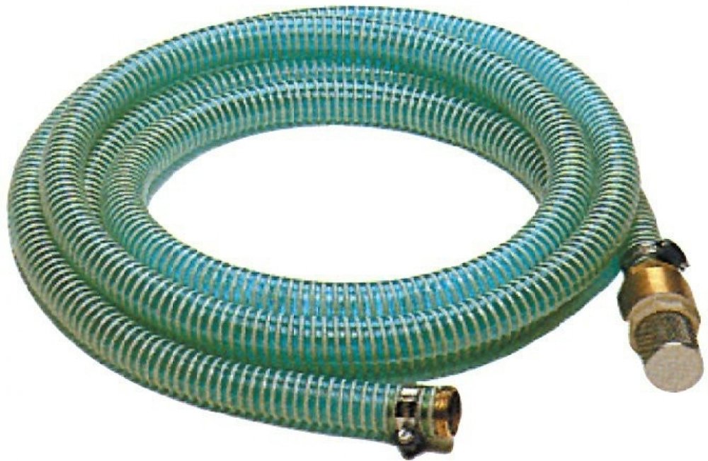 Sací hadice s vnitřní spirálovou vložkou, určená pro zahradní čerpadla nebo domácí vodárny. Vysoce odolná proti podtlaku (během sání se profil nezužuje), včetně sacího koše z nerezové oceli, mosazné zpětné klapky (zkrácené intervaly mezi opakovaným nasáváním) a spojky s vnějším/vnitřním přípojným závitem (upevnění hadicovými sponami).