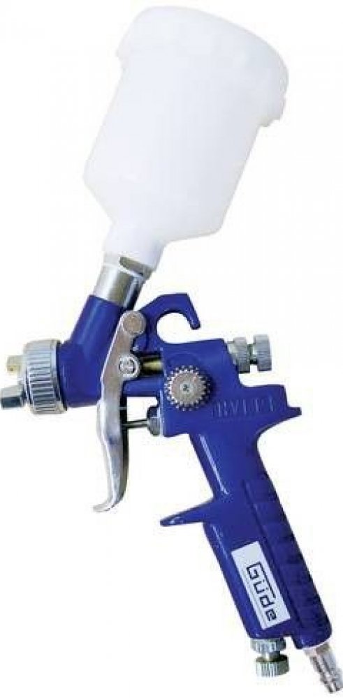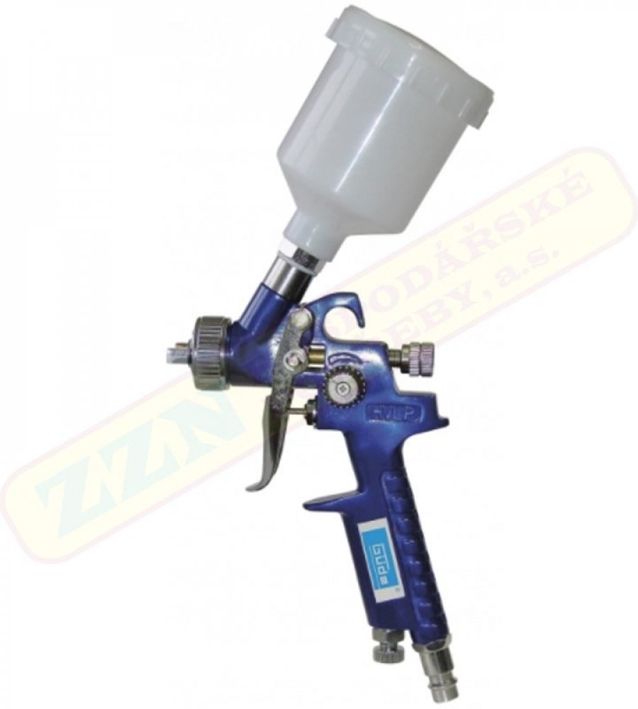 Nízkotlaková stříkací mini pistole se 100 ml spádovou nádobkou a technologií HVLP, určená pro lakýrnické práce menšího rozsahu, designové lakování, drobné opravy a pod.
