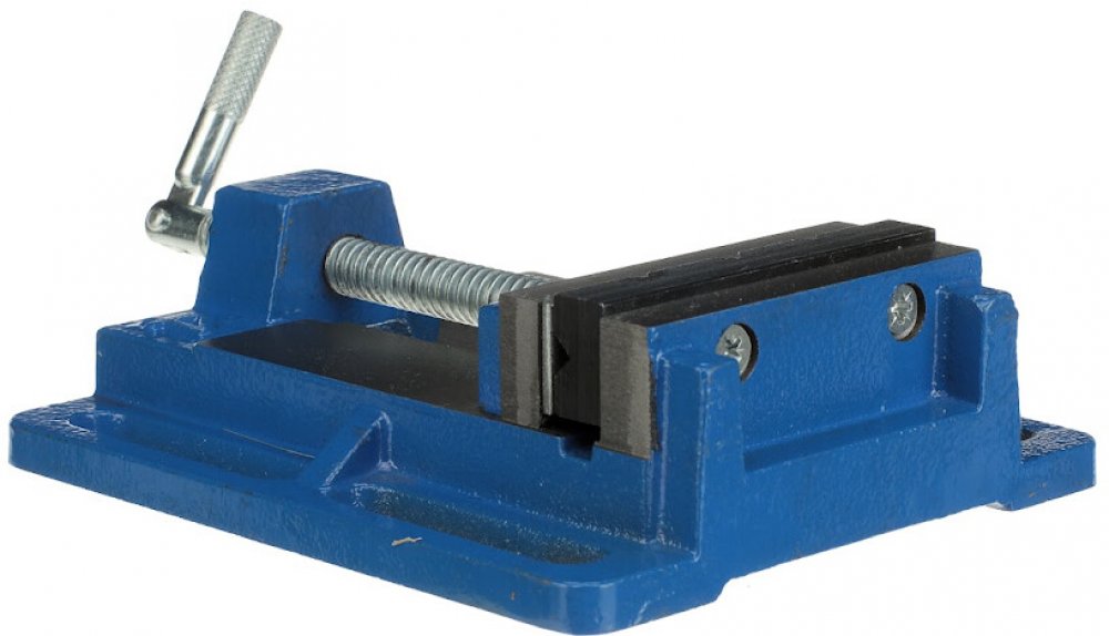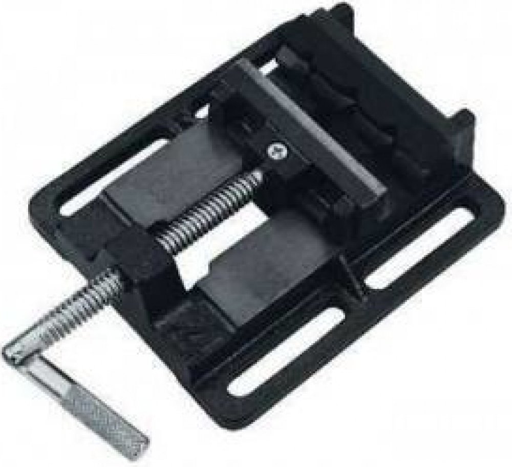 Těžké provedení z pevné litiny, upínací čelisti z jakostní oceli s profilováním na upínacích plochách. Pohyblivé vřeteno, velká upínací páka pro optimální přenos síly. Čistě broušené uložení čelistí, upevňovací drážky pro snadné upevnění na téměř všechny vrtací stoly.