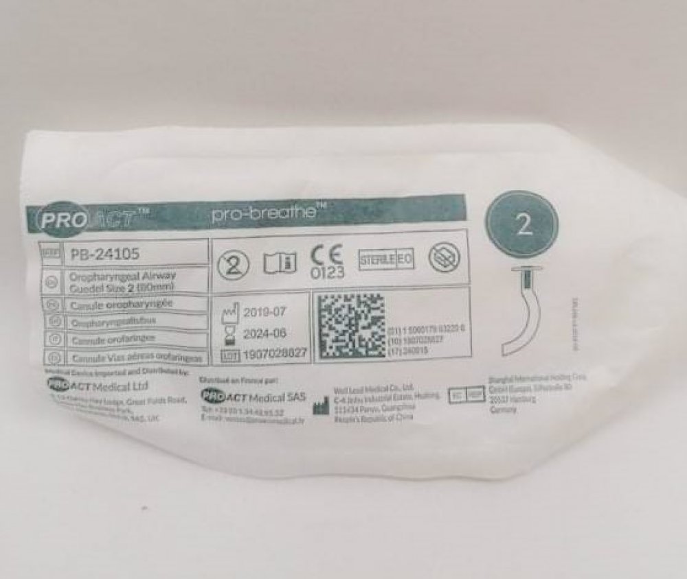 Guedel Vzduchovod ústní č. 2, 80 mm, zelená, sterilní