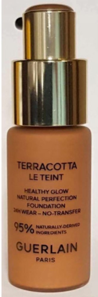 Guerlain Terracotta Le Teint , fluidní make-up s vlastnostmi tekutého pudru, definuje kontury pleti nové generace, se složením obsahujícím 95 % ingrediencí přírodního původu¹. Spojuje lehkost a zářivost pudru s dokonalostí make-upu. Jeho dlouhotrvající² složení, které se neotírá, zaručuje krásnou a zdravě zářivou pleť, jako byste se vraceli z výletu na čerstvém vzduchu. Neuvěřitelně jemná, ultralehká textura je sotva znatelná na dotek. Složení, lehké jako vzduch, je založeno na jemných pigmentech přírodního původu a obohaceno o přírodní arganový olej. Tato vzdušná formule se neuvěřitelně lehce nanáší a poskytuje dokonalé, na míru šité, budovatelné střední až vysoké krytí. Po nanesení Terracotta Le Teint je pleť nádherně vyhlazená a zářivá. Složení obsahuje zdokonalující pudry, které okamžitě vytvářejí bezchybný, a zároveň neuvěřitelně přirozený, svěží matující výsledek. Zachycují světelné částice a starají se o svěží a rozjasněnou pleť - tu pověstnou krásnou pleť se zdravými odlesky, jako byste se právě vrátili z víkendu v přírodě. Terracotta Le Teint je dostupný v široké škále 30ti odstínů: 16 intenzit a 3 podtóny (neutrální N, studený C, teplý W), které pokrývají celé spektrum pleti. Jeho výjimečné složení obsahuje samopřizpůsobivý třpyt - Gemtone, který se přizpůsobí všem tónům pleti. ¹Na základě normy ISO 16128. Zbývajících 5 % přispívá k integritě a smyslovosti výrobku. ²Instrumentální test a klinické hodnocení na 27 ženách bílé pleti.