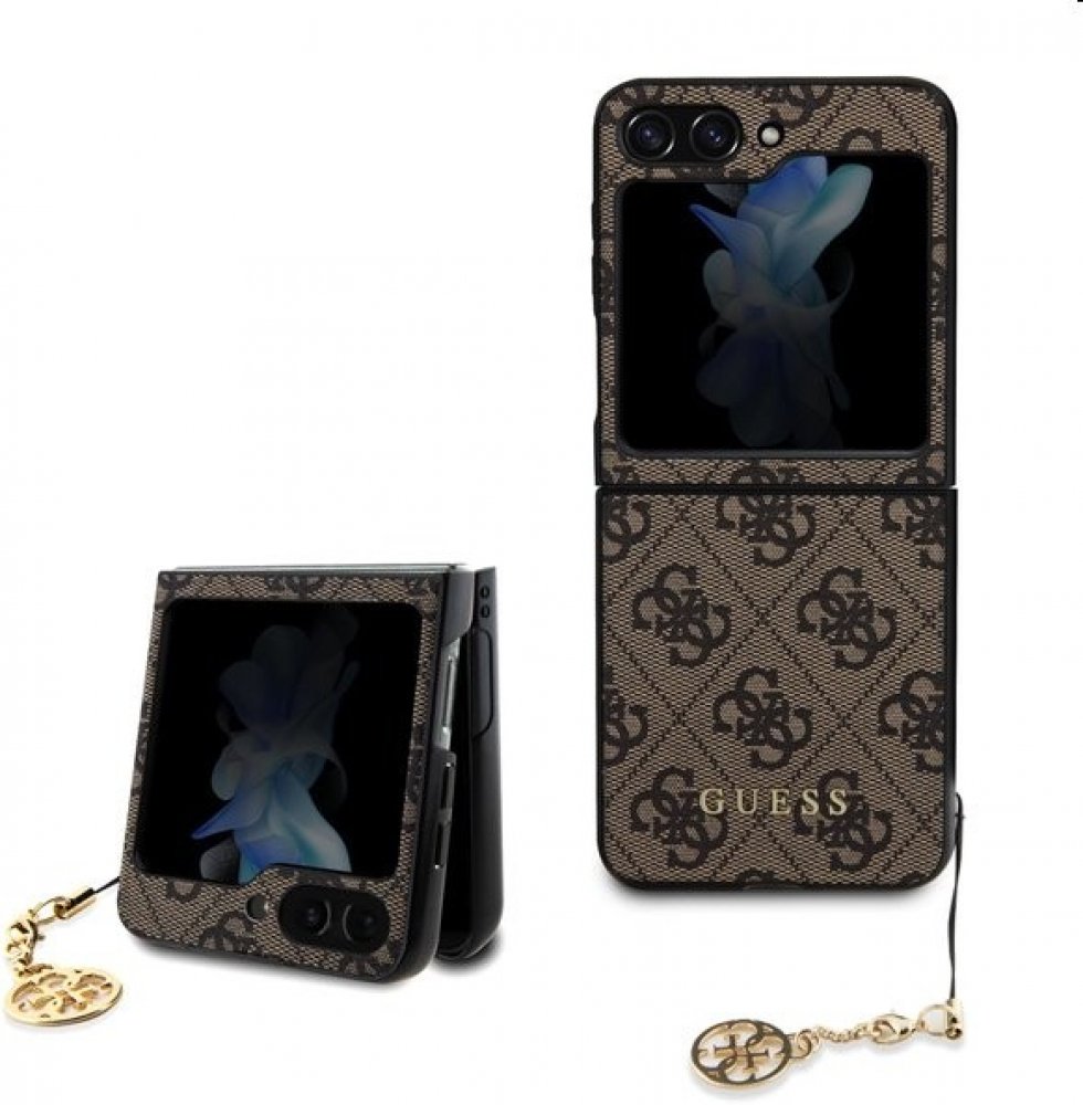 Guess 4G Charms prémiový ochranný kryt telefonu v kombinaci zadní strany s potažená látkou s motivem Guess, pružnými PU boky a atraktivním přívěskem. Guess 4G Charms Zadní Kryt pro Samsung Galaxy Z Flip 5 Brown na Nej-ceny.cz