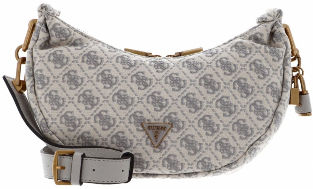 Dámská béžovošedá crossbody kabelka se vzorem od Guess.