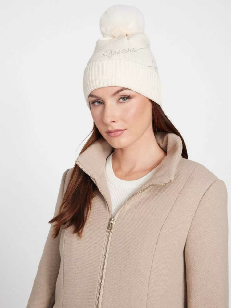 Guess dámská čepice Rhinestone mléčná