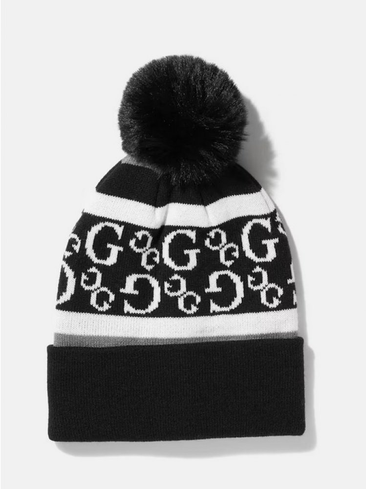Guess dámská čepice Stripe Pom beanie černá