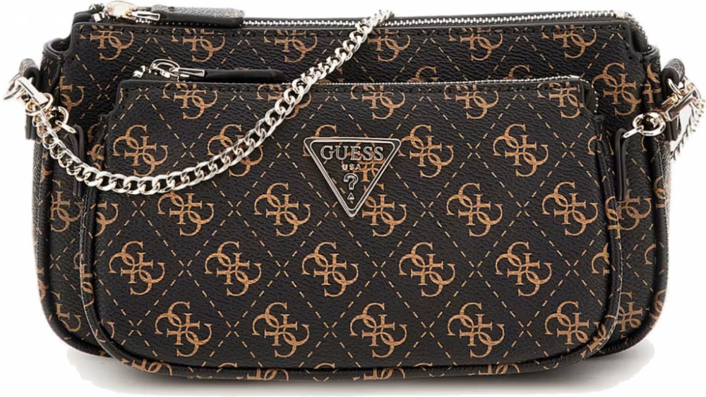 Guess crossbody textil 24 x 8 x 14 cm přes rameno 500 g zip elegantní hnědá 2 s nápisem 110 cm