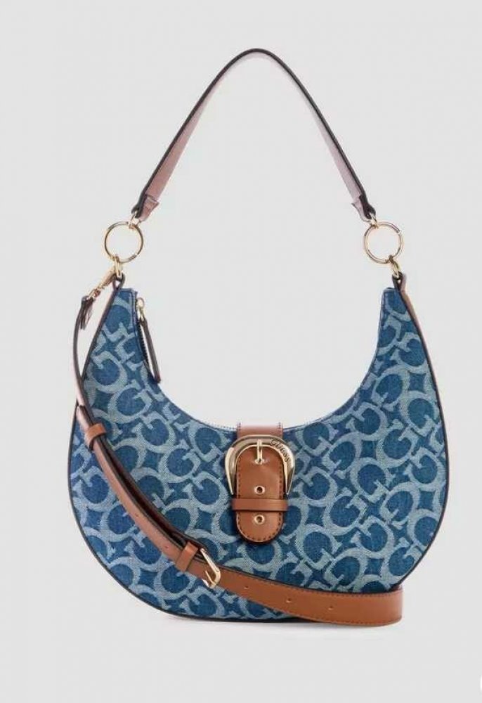 Měkká kabelka přes rameno z džínoviny a koženky