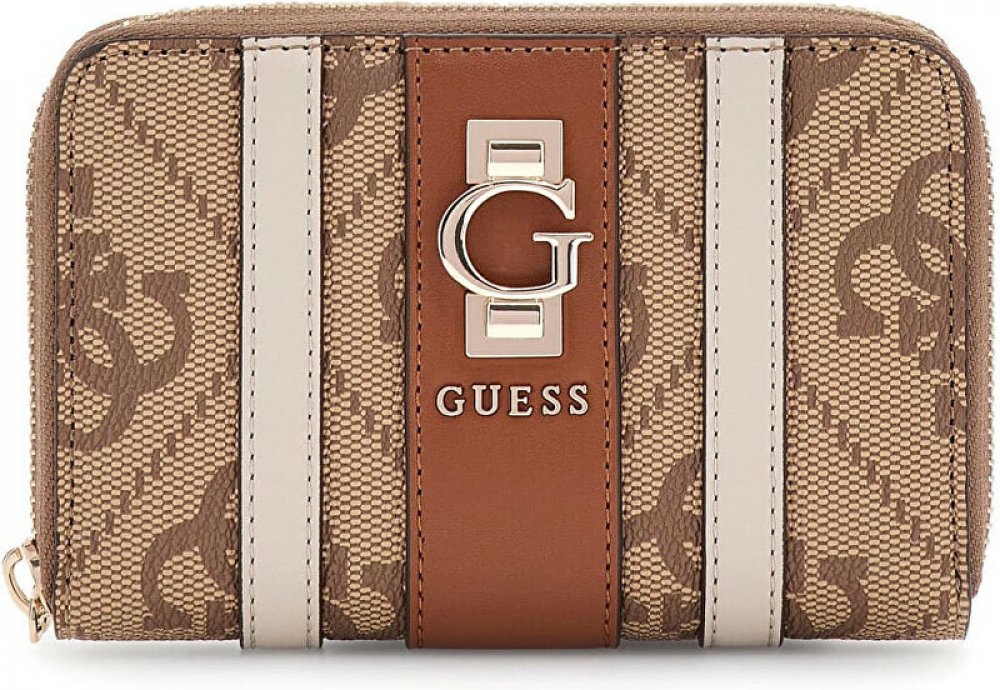 - Peněženka Guess v hnědo-béžovém provedení s logovaným vzorem,