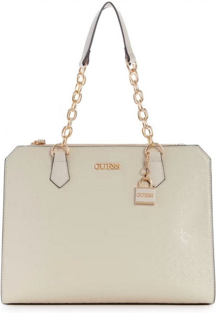 Kabelka je navržena z koženky s celoplošný logem G, horní rukojeť je kombinovaná s řetízky, emblém s logem, odnímatelnou klíčenku a odnímatelný crossbody popruh.