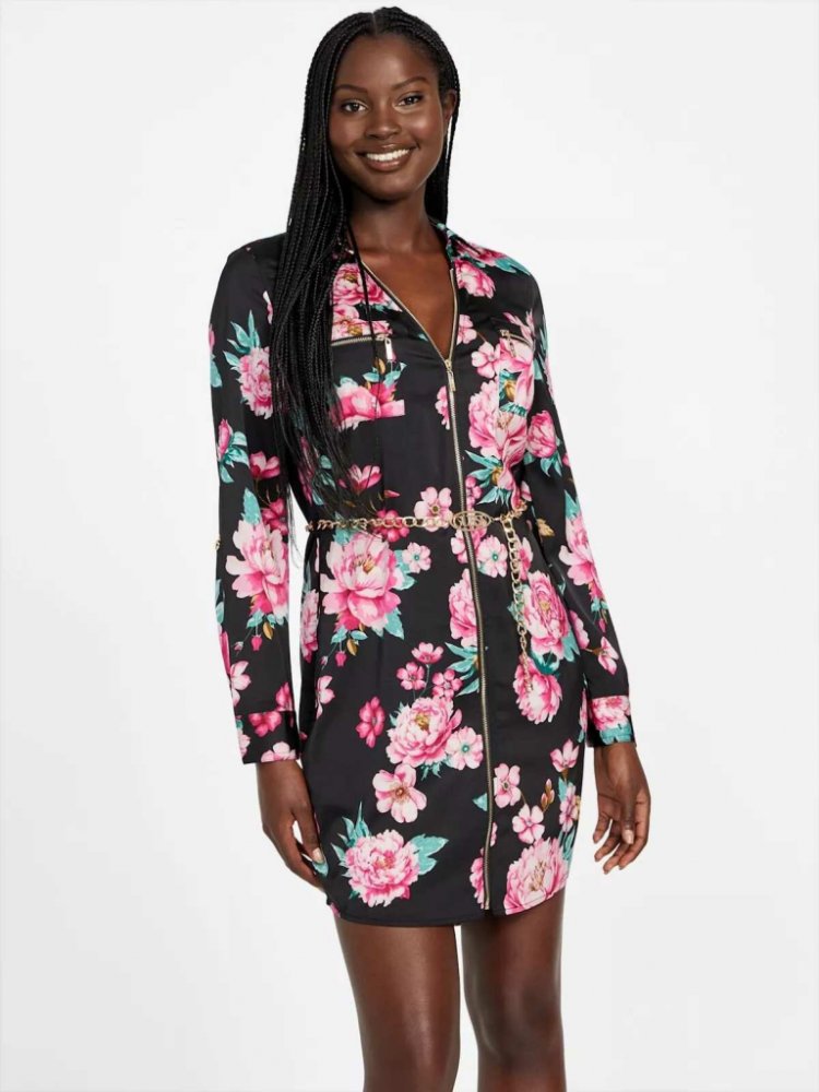 GUESS dámské šaty Elina černé květované