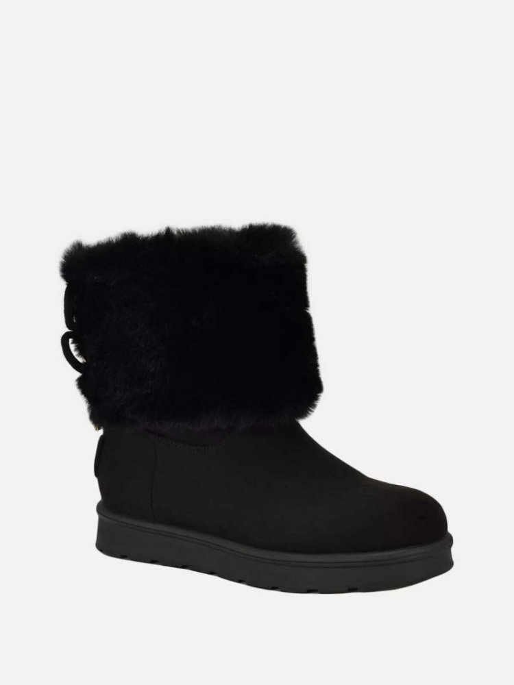 Stylové kotníkové boty z umělé semišové kůže spojují pohodlí a eleganci. Jsou zdobeny měkkým lemováním z kožíšku a mašličkami na zadní straně, které dodávají ženský a hravý vzhled. Dekorativní přívěsky s logem podtrhují moderní design. Díky kulaté špičce, kotníkové výšce a pružné gumové podešvi se snadno nosí a poskytují celodenní komfort. Nazouvací provedení zajišťuje pohodlné obouvání bez zipu či tkaniček.
