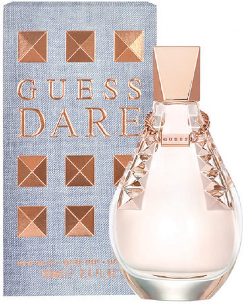 GUESS Dare. Vzrušující a provokativní, taková je vůně Guess Dare, která symbolizuje vášnivou, svůdnou a sexy ženu. Ženu, která má svůj vlastní styl, miluje dobrodružství a ráda přitahuje pozornost. Vůni v roce 2014 pro značku Guess sestavil parfumér Bruno Jovanovic. Guess Dare: Odvážná vůně pro odvážné ženy V úvodu toaletní vody Guess Dare si můžete užít vůni broskvových a citrónových květů doplně