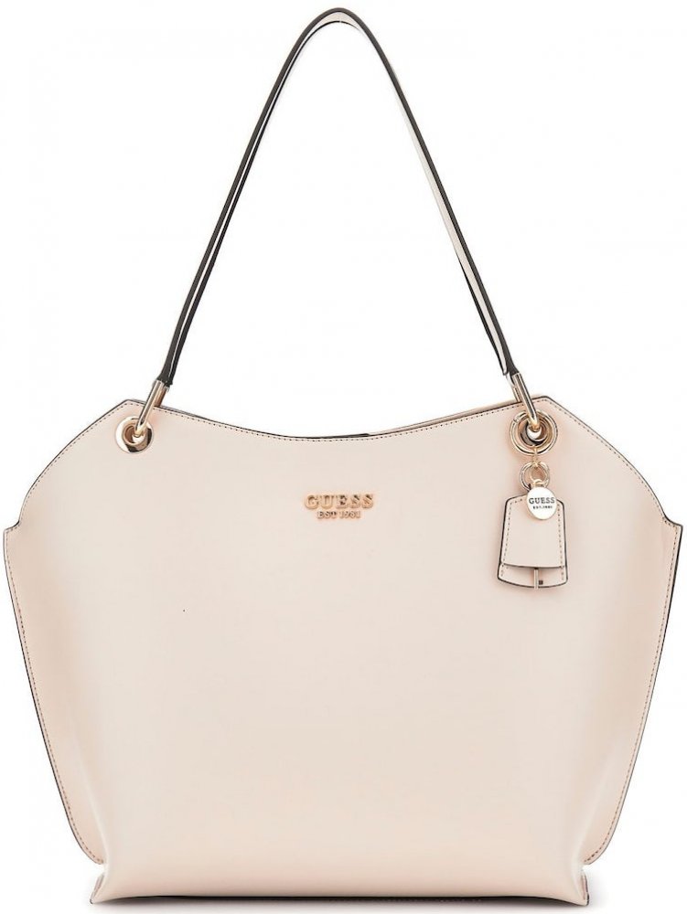 Kabelka má dvě ucha do ruky nebo na rameno. Na zadní straně je kapsa na zip. Kabelka má zapínání na magnet. Vnitřní prostor kabelky je rozdělený přepážkou na dvě části. Přepážka slouží jako kapsa se zapínáním na zip. Uvnitř kabelky je pevná podšívka s legem Guess, kapsa na zip a dvě otevřené kapsičky. Na dně kabelky jsou kovové ochranné cvoky. Kovové komponenty mají zlatou barvu. Ke kabelce je och...