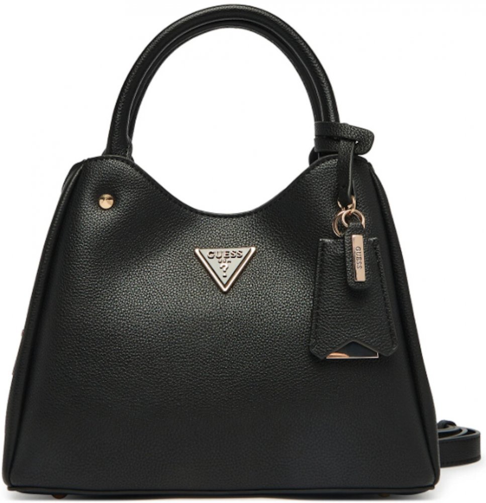 Malá dámská kabelka Guess v černé barvě se zlatými prvky. Přední stranu zdobí logo GUESS ve zlaté barvě. Kabelka má tři komory. Prostřední komora na zip, kde se nachází kapsička na zip na cennosti. Postranní kapsy uzavíratelné na magnetický druk. Součásti kabelky je i odnímatelný popruh, který umožňuje pohodlné nošení různými způsoby. Kabelku tak můžete nosit nejen v ruce ale i jako crossbody. Ochranné nožičky na spodní straně kabelky jako ochrana před zašpiněním. Stylová volba pro každodenní nošení. Součástí kabelky je prachový pytlík.