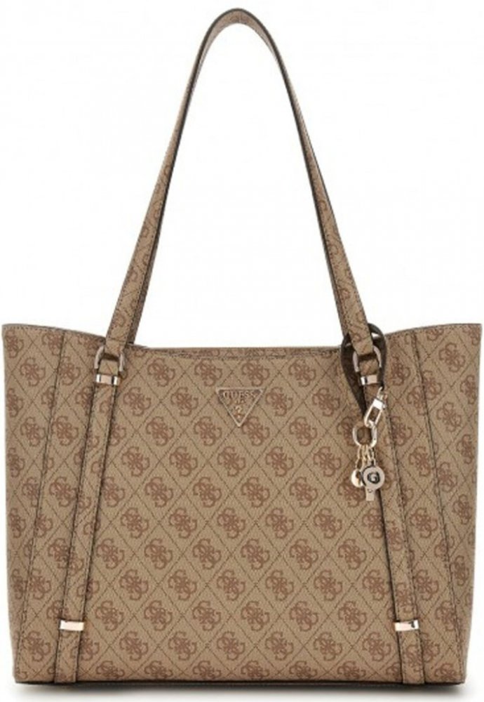 Dámská luxusní kabelka oblíbené značky Guess je v hnědé barvě s potiskem loga 4G.Dámská luxusní kabelka oblíbené značky Guess je v hnědé barvě s potiskem loga 4G. Má elegantní tvar a součástí kabelky je odnímatelný ozdobný přívěšek a prachový pytlík. Vnitřní část kabelky má dvě samostatné komory, kde se nachází kapsička na zip a dvě přihrádky na drobnosti. Další komora se zapíná na druk. Kovové de...