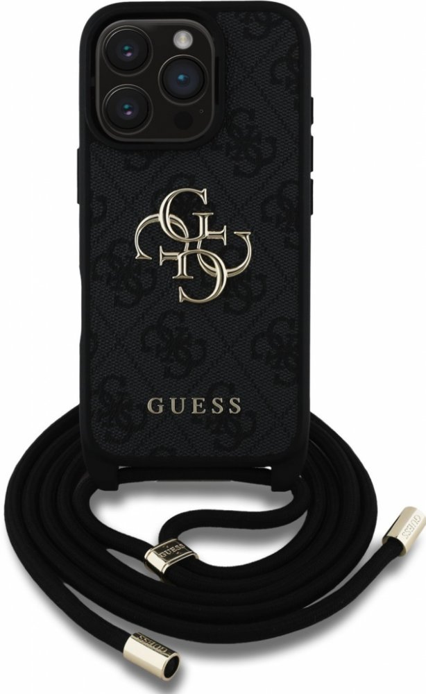 Guess PU 4G Metal Logo Crossbody Popruh pro Apple iPhone 16 Pro Max, černá