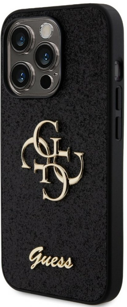 Guess PU Fixed Glitter 4G Metal Logo Zadní Kryt pro iPhone 15 Pro Černý 14531621