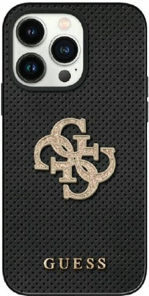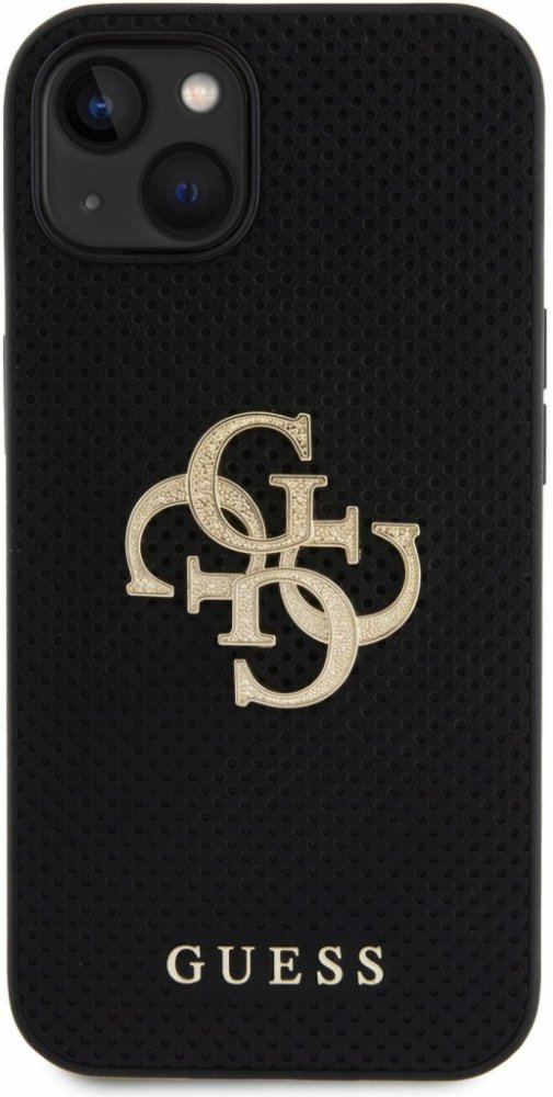 Guess PU Perforated 4G Glitter Metal Logo iPhone 15 černé