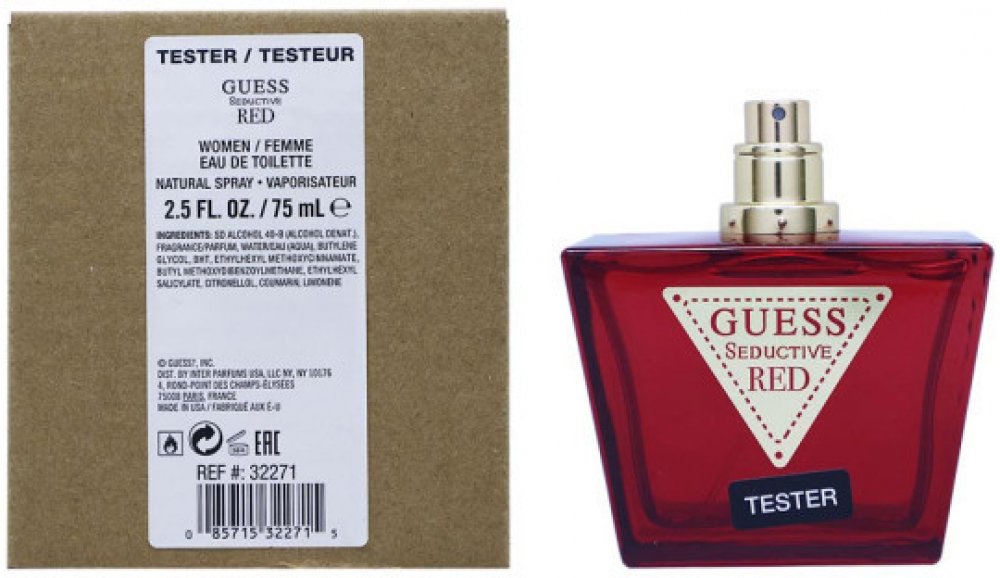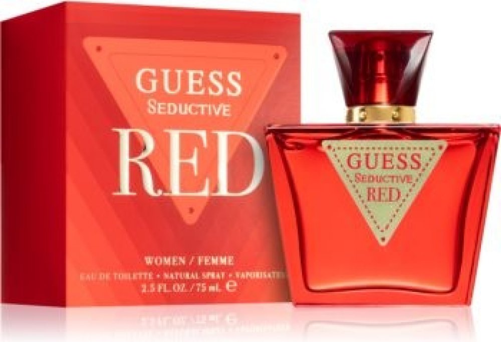 Guess 75 ml dámské toaletní vody orientální univerzální s celodenní výdrží (4-8h) romantické a smyslné Seductive Red 2021 z Německa mainstreamové mandle, růžový pepř, třešeň fialka, magnólie, třešňový květ santalové dřevo, tonka fazole, vanilka se střední projekcí zimní kompatibilní s třešní, s vanilkou, s tonkovými boby, s mandlí Interperfums testery TSA kompatibilní (≤100ml) rozprašovač standardní Citronellol, Coumarin, Limonene