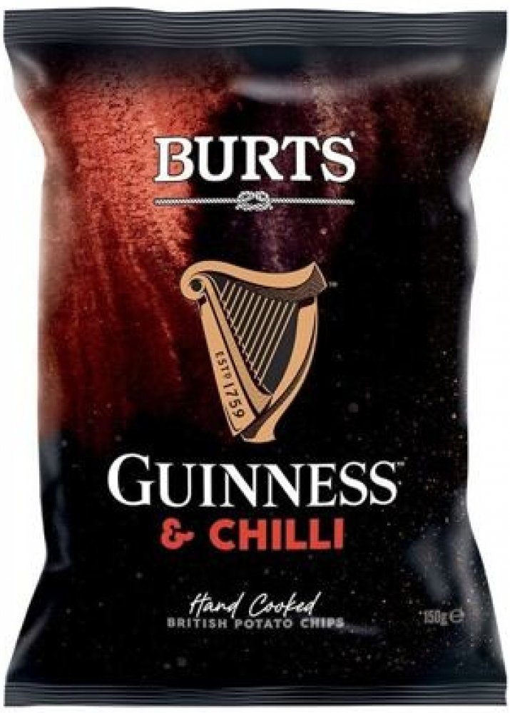 Frajeři v Burts vědí jak na nejlepší brambůrky! Nejdříve pečlivě vybrané brambory osmaží do křupavé dokonalosti a následně je ještě horké okoření speciální chilli směsí na základě opraženého chmele a ječmene. A tak se na svět zrodí dokonale křupavé brambůrky s typickou hořko-sladkou příchutí známého irského stoutu a chilli :)