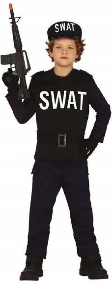 Chlapecký převlek na karneval GUIRCA každého okouzlí svým originálním vzhledem, protože je spojen s akčními příběhy, které se dají dále rozvíjet. Maska Policista SWAT potěší precizně zpracovanými detaily. Kostým ve velikosti L je vhodný pro kluky ve věku 7 až 9 let a kromě karnevalových oslav se dá využít také pro běžnou hru. Balení obsahuje košili s vestou, kalhoty, opasek a čepici. Klíčové vlast...