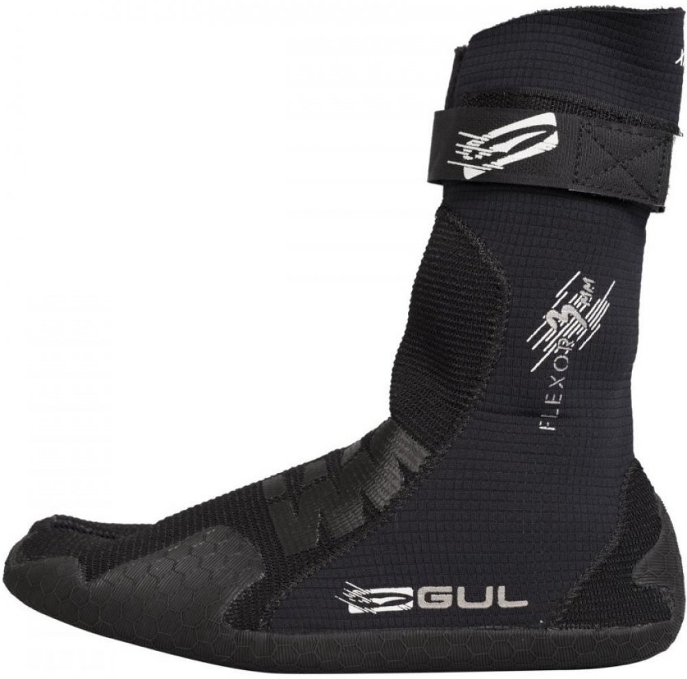 Gul Flexor 3 mm je nejlehčí vysoká neoprénová bota na trhu. Tento model disponuje novou recoil technologií, která pomocí 3D nátisku na horní straně boty pomáhá udržovat šlachy na správném místě a zvyšuje tak stabilitu nohy. Vychytávky: BLINDSTITCHED: slepé švy RS-FLEX: 150% průtažný materiál THERMOSPAN: vnitřní systém pro udržení tepla POWERTEX4: vyztužená špička boty G-TAPE: Vnitřní vyztužení švů RECOIL: zvýšená opora nohy H10: tenká podrážky, pro pocit bosé nohy LEASHGUARD: ochrana proti zaseknutí leashe