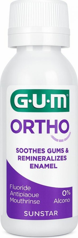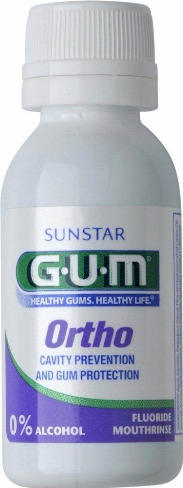 Antibakteriální ústní voda GUM Ortho s obsahem přírodních látek zvyšuje ochranu proti zubnímu kazu a podráždění dásní a udržuje Váš dech svěží po celý den. Speciální ústní voda s vyšším obsahem fluoridů (400 ppm F) poskytuje perfektní remineralizaci zubní skloviny při nošení rovnátek, které mohou přispívat ke zvýšenému odvápnění zubní skloviny.