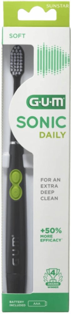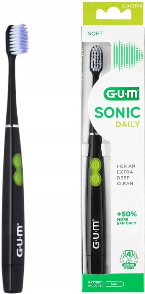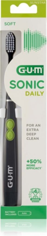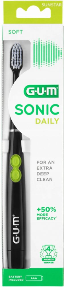 Jeho vibrační hlava také jemně masíruje dásně. Kartáček je moderní, lehký a kompaktní a nabízí skvělý zážitek ze čištění pro celou rodinu. Tento oceněný zubní kartáček, dříve známý pod názvem GUM ActiVital Sonic, je nyní k dispozici pod novým názvem GUM SONIC DAILY a v novém balení.