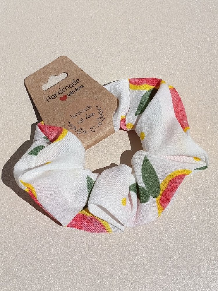 Originální ručně vyráběná gumička do vlasů v bílé barvě s motivem pomeranče.