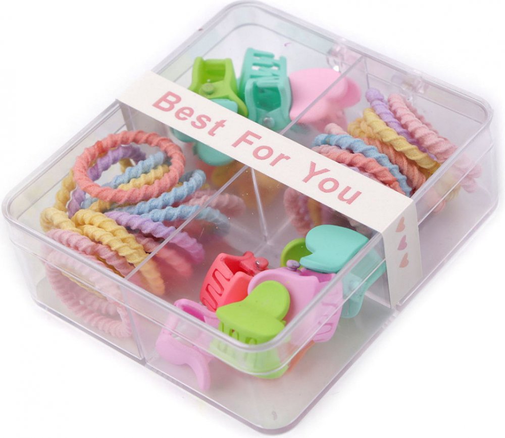 Gumičky a skřipce do vlasů v boxu Varianta: 2 mix srdce, Balení: 1 krab.