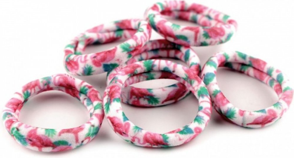 Gumičky do vlasů s barevnými obrázky malých plameňáků jsou k vlasům šetrné. Výborně drží, jsou vhodné pro jemné i husté vlasy.Vnitřní průměr volně položené gumičky je 3 cm, maximální délka obvodu po roztažení je 26 cm.Na jedné kartě je 6 gumiček.