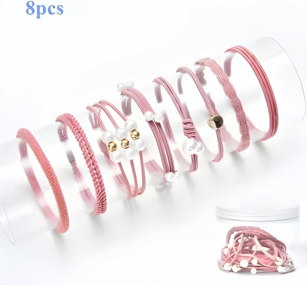 Sada 8 gumiček do vlasů PI-19630 za skvělou cenu. Těmito gumičkami můžete doladit celý váš outfit.