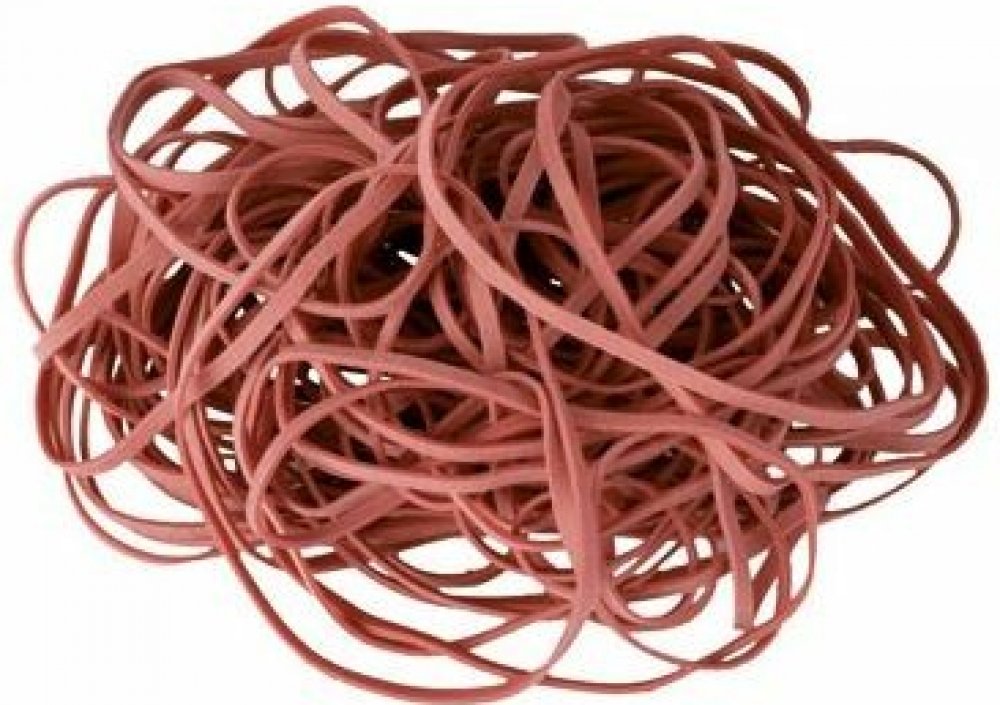 Elastické gumičky z přírodního materiálu v červené barvě60% podíl pryžeprůměr: 80 mm100 g
