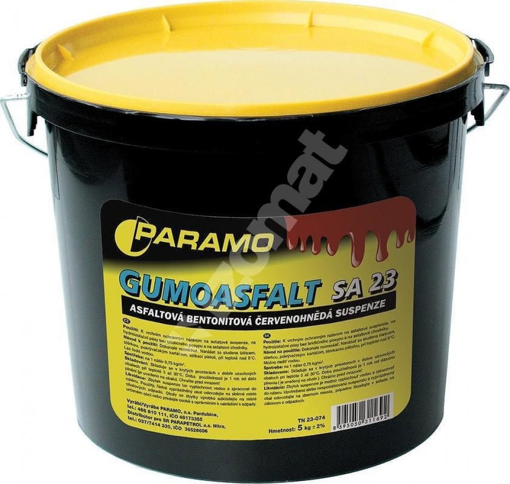 Jedná se o Gumoasfalt, který je vodou ředitelné nátěrové slabě hmoty kyselého charakteru, ve kterých je jako plnidlo obsažen mletý bentonit. Dobře přilnou ke všem stavebním materiálům.Gumoasfalt k údržbě asfaltových povlakových krytin, kombinovaná krytina nových střešních plášťů, těsnění střešních detailů. Zpracování: za studena nátěrem pokrývačským kartáčem, štětcem, stěrkou nebo nástřikem pomocí...