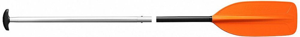 Klasické dvoudílné kanoistické pádlo s duralovou žerdí a rovným listem.
