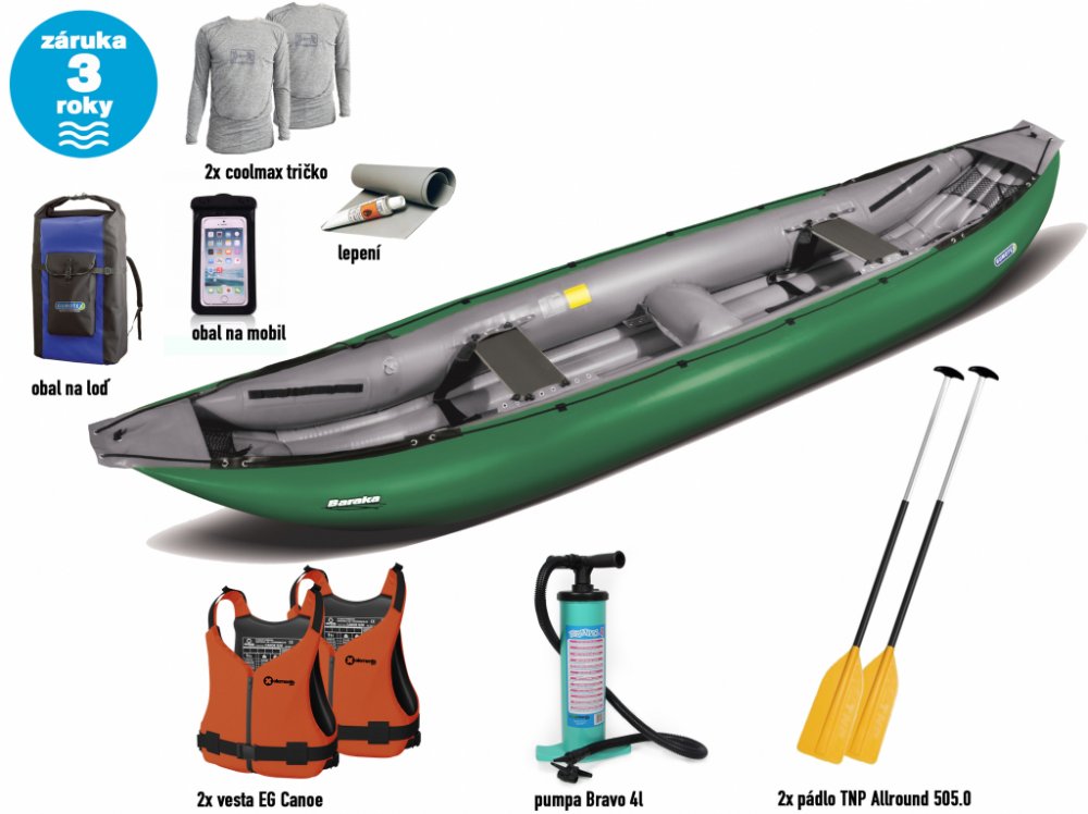 Baraku považujeme za nejlepší nafukovací kanoi na divokou vodu. U dna se uplatňuje tzv. kýlový profil, který vyztužuje dno a zlepšuje celkovou hydrodynamiku lodi, což se projevuje zvýšením rychlosti kánoe. Mimořádně pevný trup má výborné jízdní vlastnosti, které posádka ocení zejména při plavbě v peřejích. Kanoe Baraka nabízí bezkonkurenčně bohatou vnitřní výbavu a mimořádně velký vnitřní prostor....