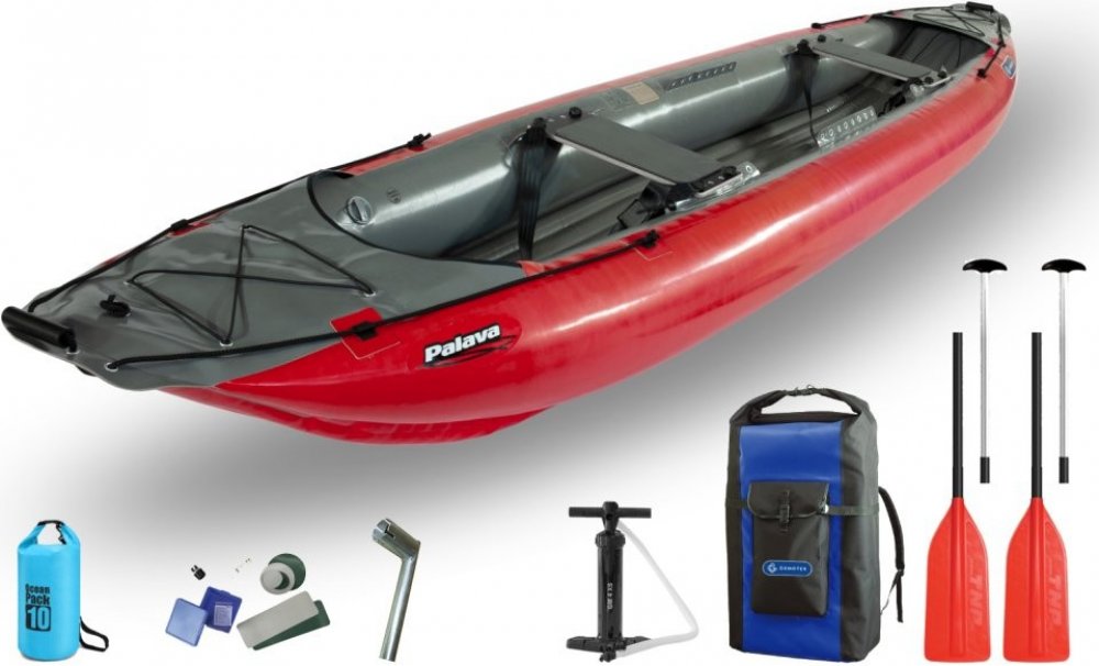 Kanoi Palava 400 GUMOTEX dodáváme ve vodotěsném vaku o objemu 100 l a včetně lepící soupravy a redukce na Push-push ventil. Ve vodotěsném vaku je možno Pálavu přenášet na zádech a během plavby v něm můžete uchovat všechny potřebnosti pěkně v suchu.